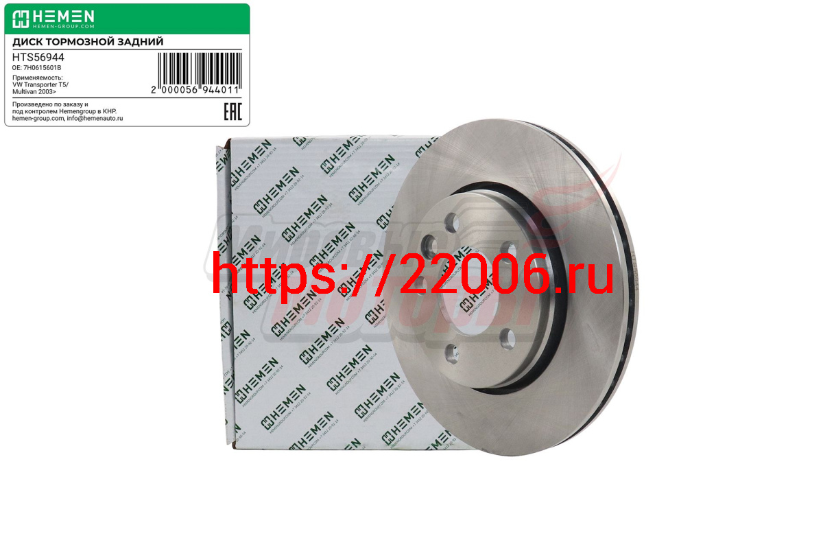 - Диск тормозной задний VW Transporter T5/Multivan 2003> D=294 мм (HTS56944) в Казани недорого