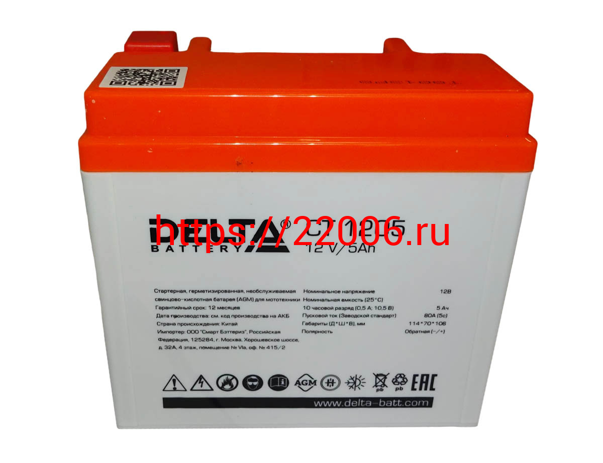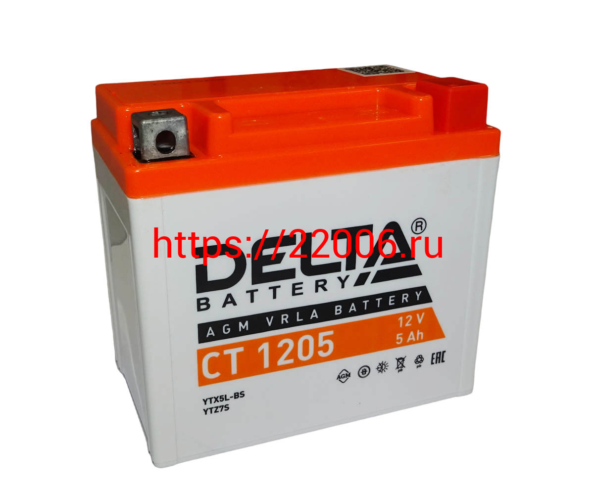- Аккумулятор 12В 5 А/ч, кислотный AGM (Delta СТ 1205) (113х70х106) обратная полярность, для Альфы в Казани недорого