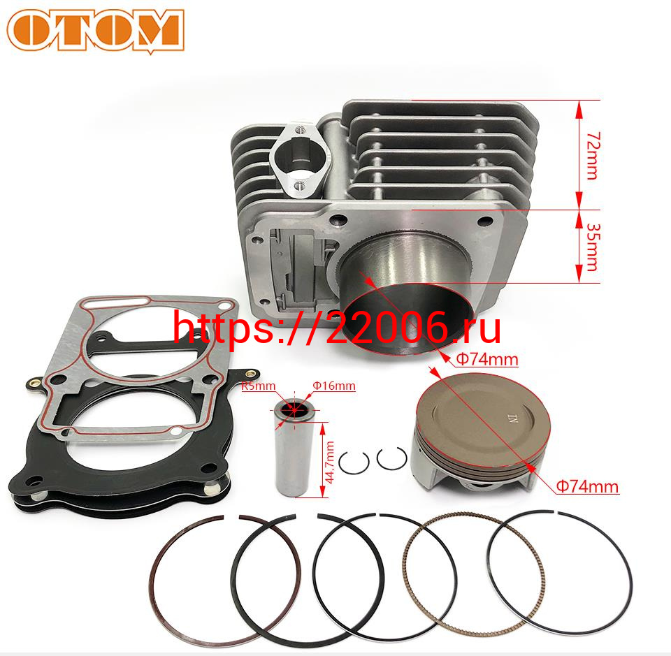 - Цилиндр в сборе с поршнем ZS172FMM-3A, 74мм, тюнинг ZS174FMM (CB250-F) (big bore) OTM в Казани недорого